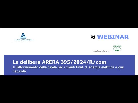 Nell’ambito dello Sportello per il consumatore, gestito dal settore Regolazione del mercato della Camera di commercio di Torino, in collaborazione con il suo Laboratorio Chimico e con il Dipartimento di Giurisprudenza dell’Università degli studi di Torino, Codacons Piemonte organizza un webinar sulla delibera ARERA 395/2024/R/com riguardante il rafforzamento delle tutele per i clienti di energia elettrica e gas.