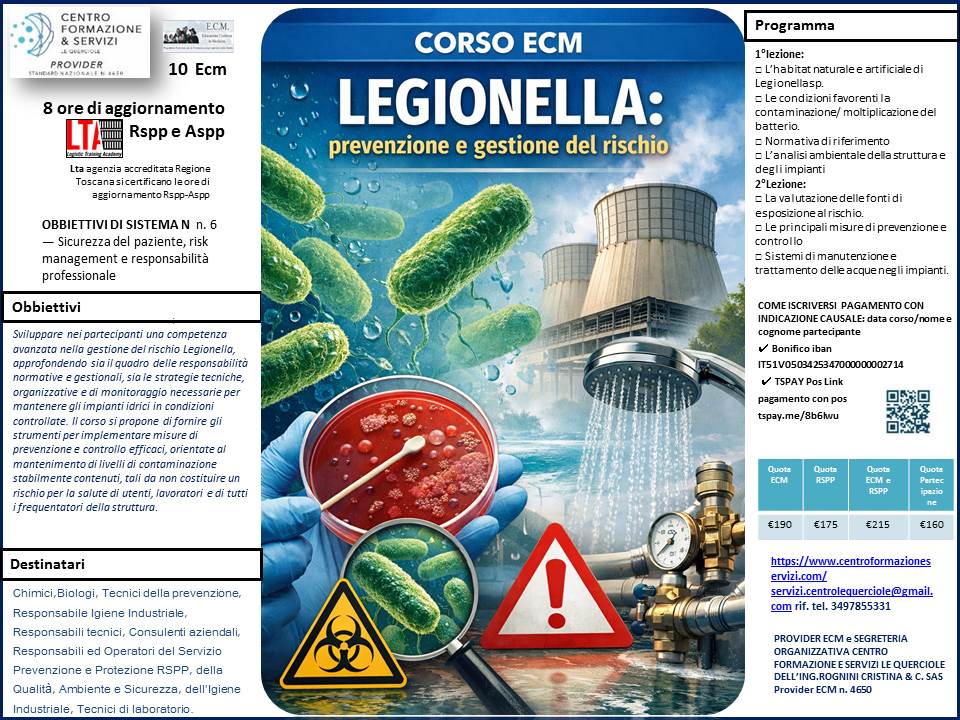 Corso ECM online. Legionella prevenzione e gestione del rischio